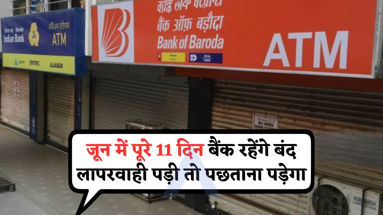 जून में 11 दिन बैंक रहेंगे बंद – जानिए कौन सी तारीखों पर नहीं मिलेंगी बैंकिंग सेवाएं